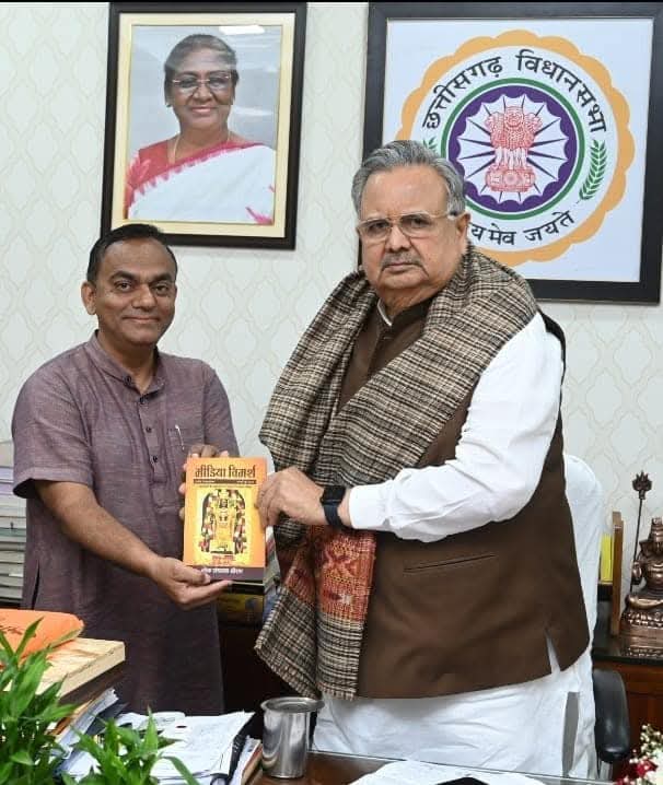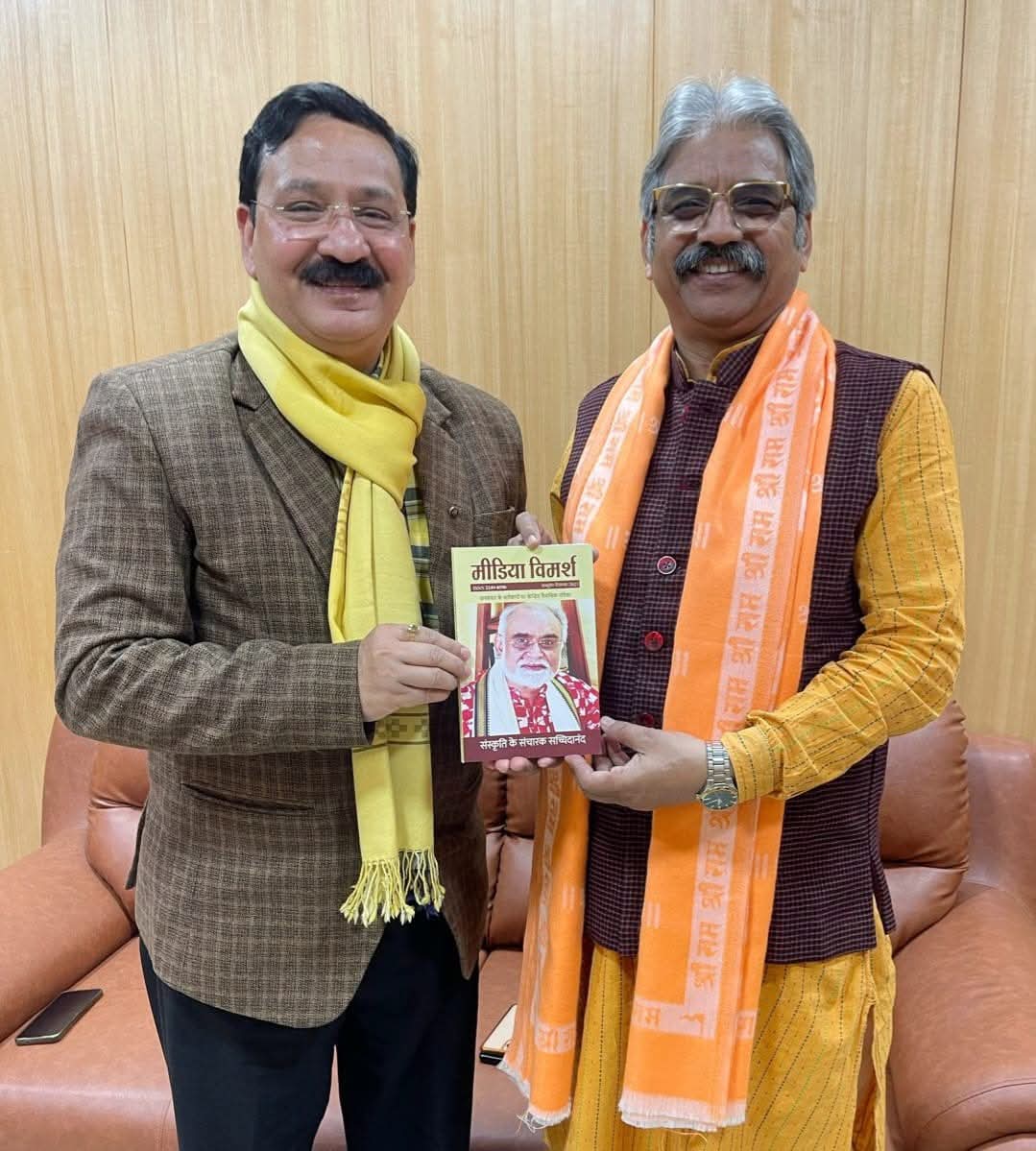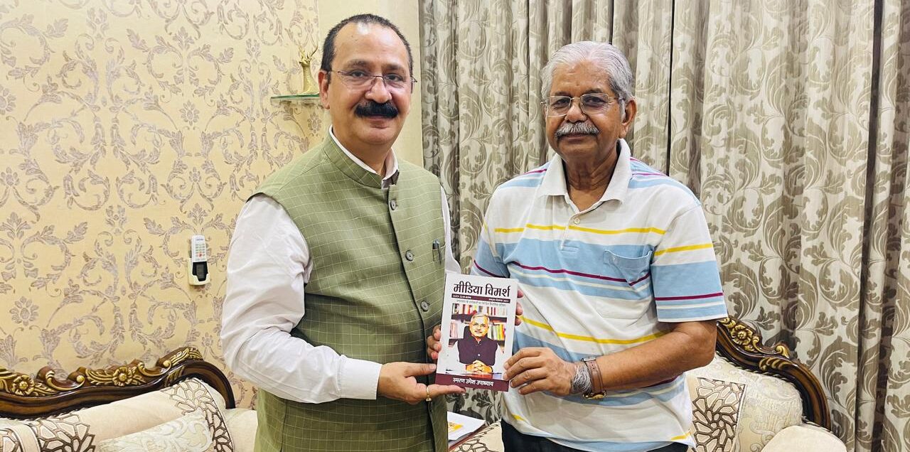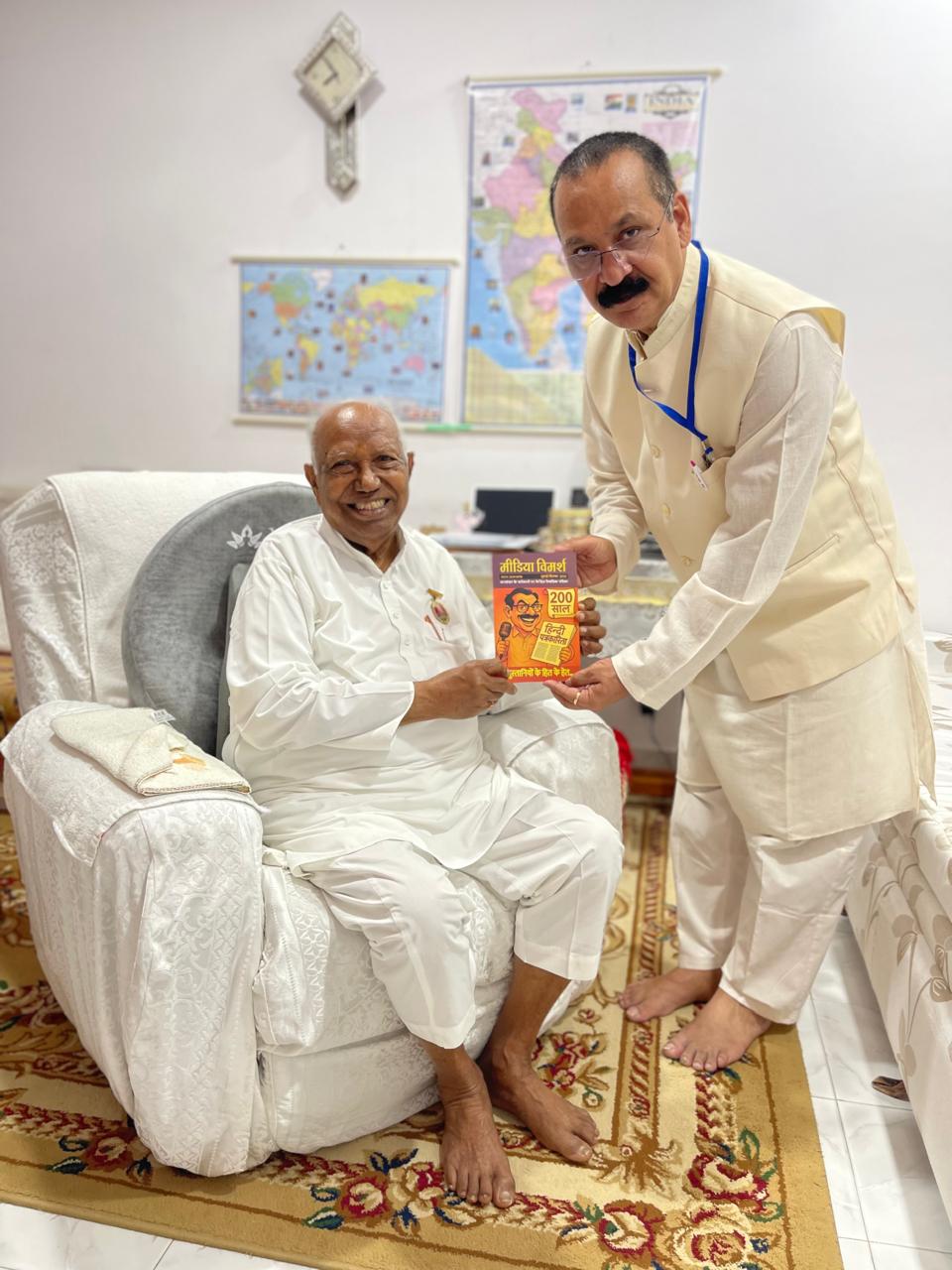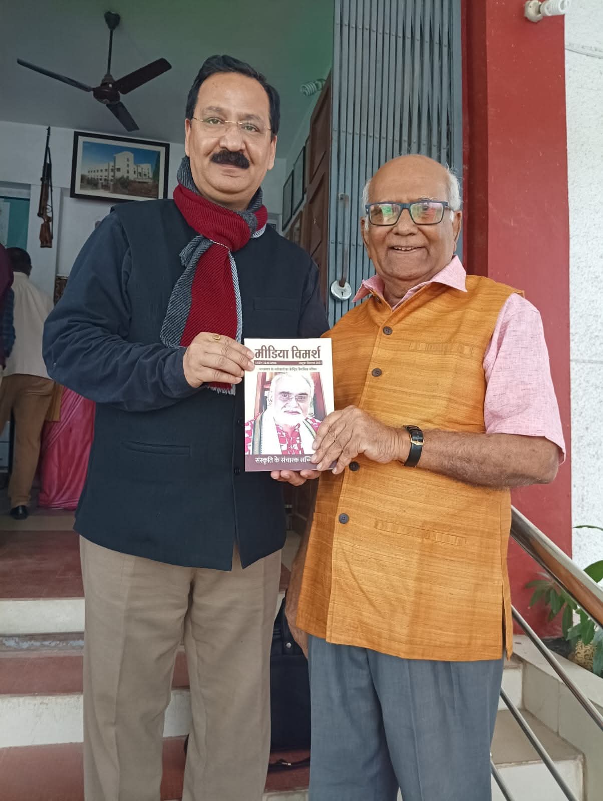 छत्तीसगढ़ विधानसभा के पूर्व अध्यक्ष श्री धरमलाल कौशिक को मीडिया विमर्श की प्रति भेंट करते हुए प्रो.संजय द्विवेदी।