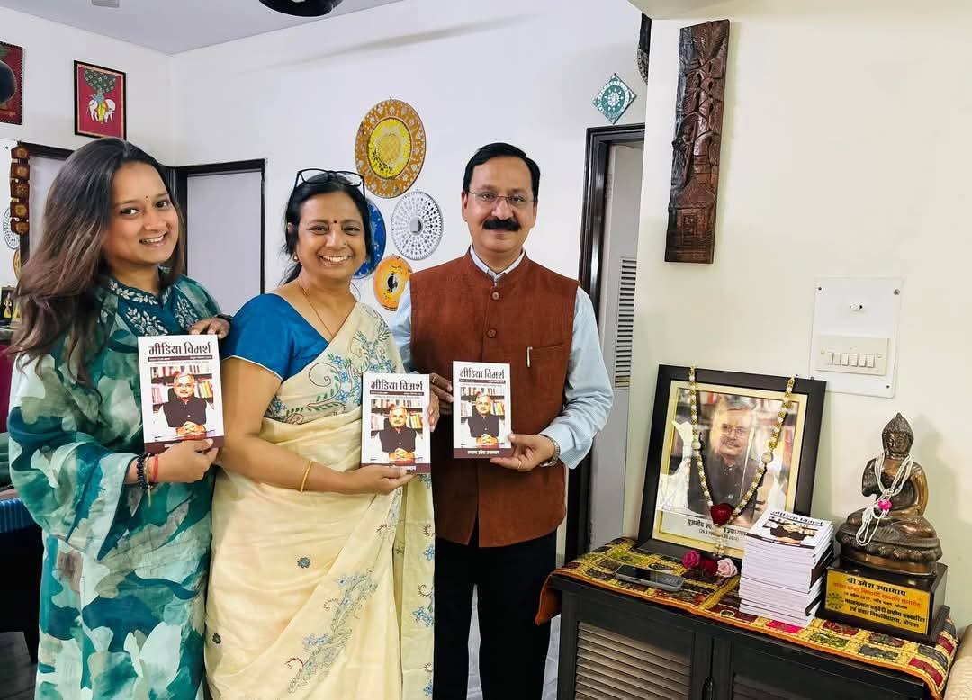 नई दिल्ली।हमारे समय के यशस्वी पत्रकार-संपादक श्री उमेश उपाध्याय जी की स्मृति में प्रकाशित 'मीडिया विमर्श' के स्मृति अंक की प्रति आदरणीया भाभी जी श्रीमती सीमा उमेश उपाध्याय को भेंट की। इस अवसर पर उमेश जी की सुपुत्री दीक्षा उपाध्याय भी साथ हैं।