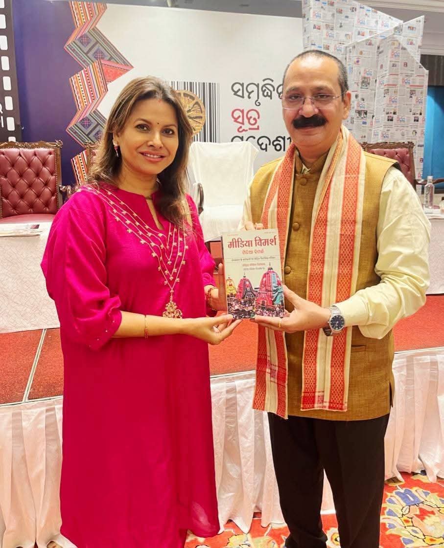 भुवनेश्वर। उड़िया फिल्मों की अभिनेत्री और भाजपा उड़ीसा की प्रदेश सचिव श्रीमती पिंकी प्रधान को पत्रिका का 'उड़िया मीडिया विशेषांक' भेंट करते हुए प्रोफेसर संजय द्विवेदी।