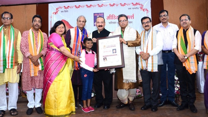 पुणे ‌। फैशन क्वीन और बहुमुखी अदाकारा ईशा अग्रवाल को 'मीडिया विमर्श' का नवीनतम अंक भेंट करते हुए। यह अंक हिंदी पत्रकारिता की 200 साल की गौरवशाली यात्रा को समर्पित है।